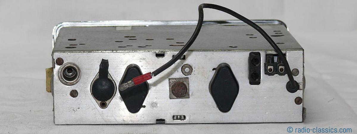 This oldtimer radio has a 12-V-connection, one speaker connector, one antenna socket, a connector for additional equipment.