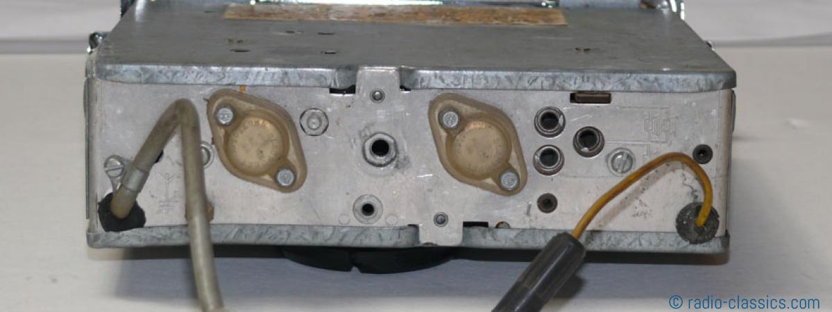 This oldtimer radio has a 12-V-connection, one speaker connector, one antenna socket.