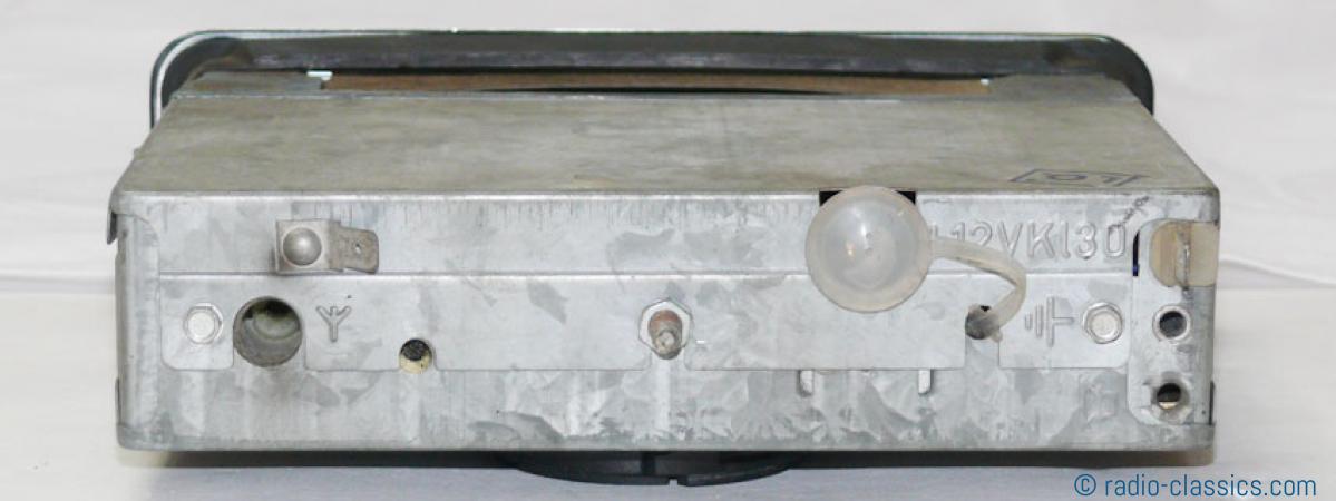 This oldtimer radio has a 12-V-connection, one speaker connector, one antenna socket, a connector for additional equipment.